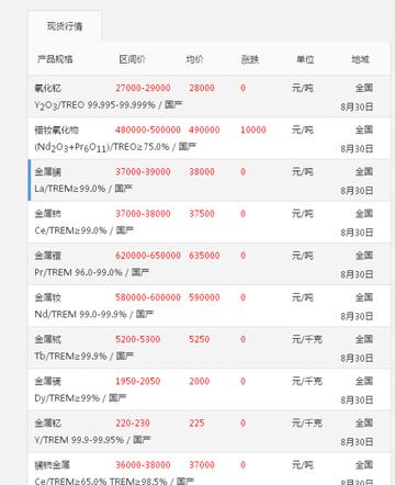 今日上海最新稀土价格及分析